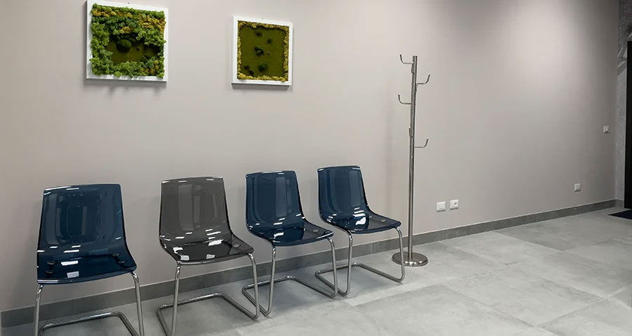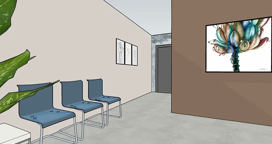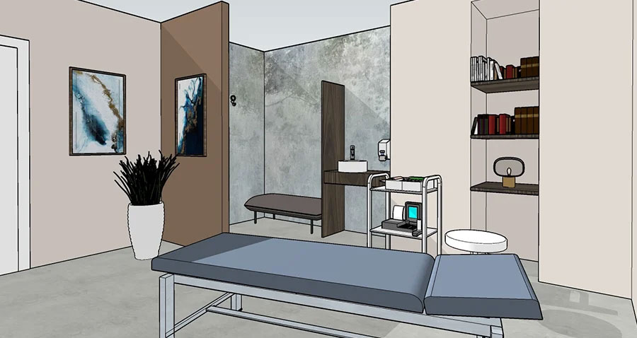 Le finiture e gli arredi sono stati scelti con cura: dalla pavimentazione ai colori delle pareti, fino alla carta da parati e ai complementi d’arredo. Ho optato per una palette di colori naturali per creare un ambiente tranquillo e accogliente, favorendo il benessere dei pazienti e del personale.